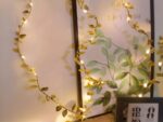 Guirlande LED à pile dorée en fil de cuivre ornée de feuilles