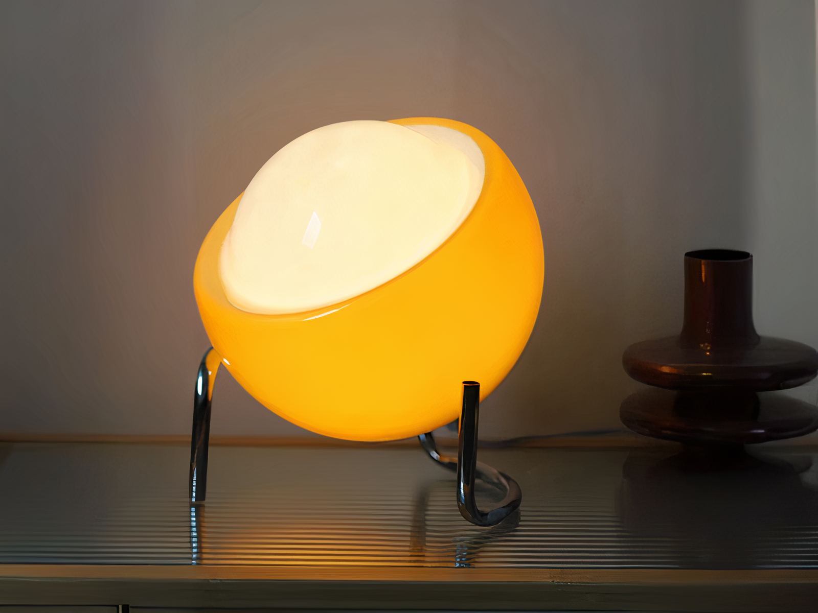 Lampe à poser LED orange tactile et sphérique