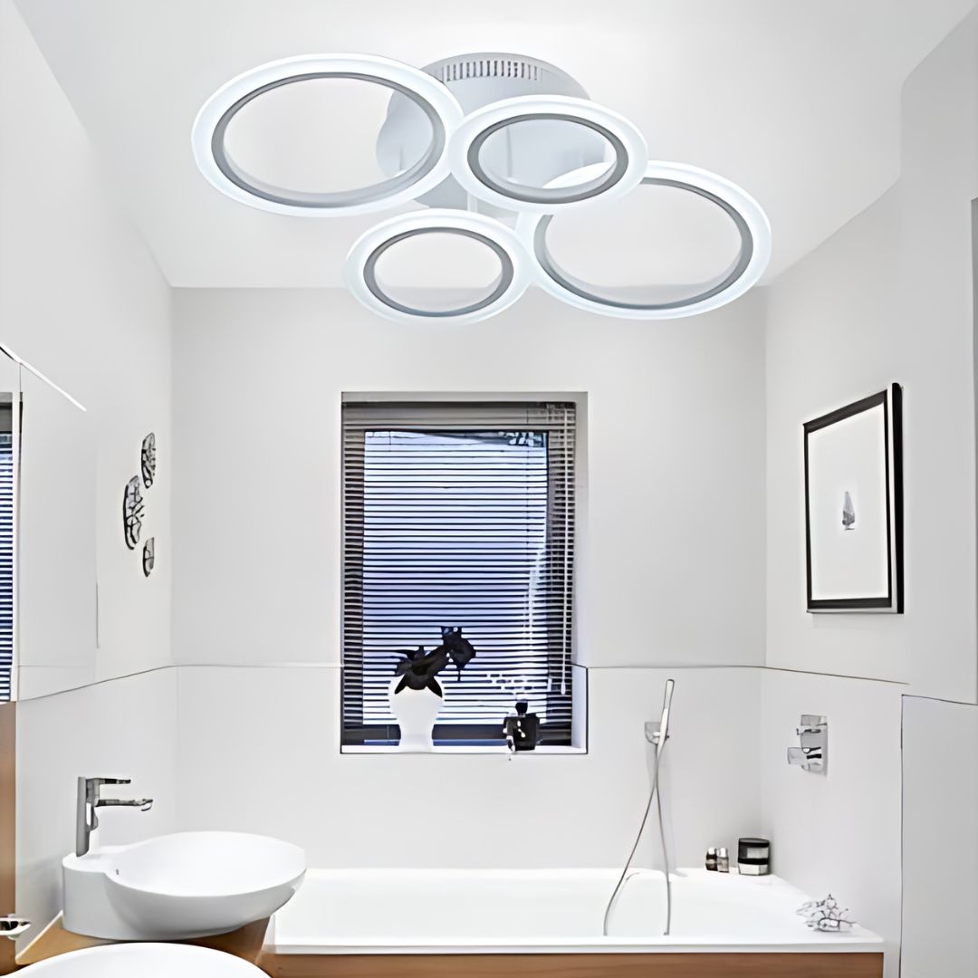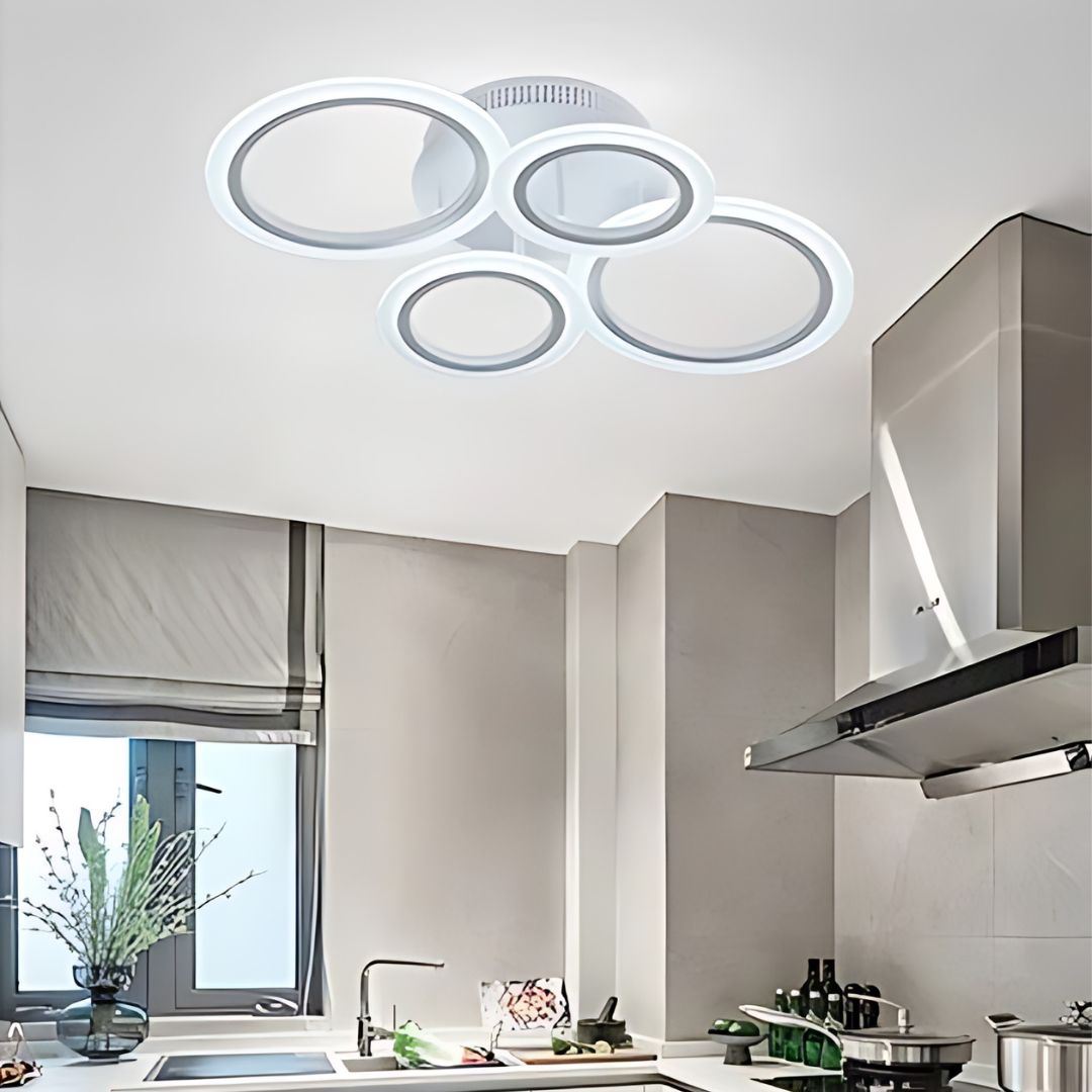 Ce plafonnier LED à quatre anneaux suspendus est une option idéale pour dynamiser n’importe quel intérieur. Avec son design unique, il se marie parfaitement à une salle de bain moderne, une cuisine lumineuse ou même un salon cosy.
