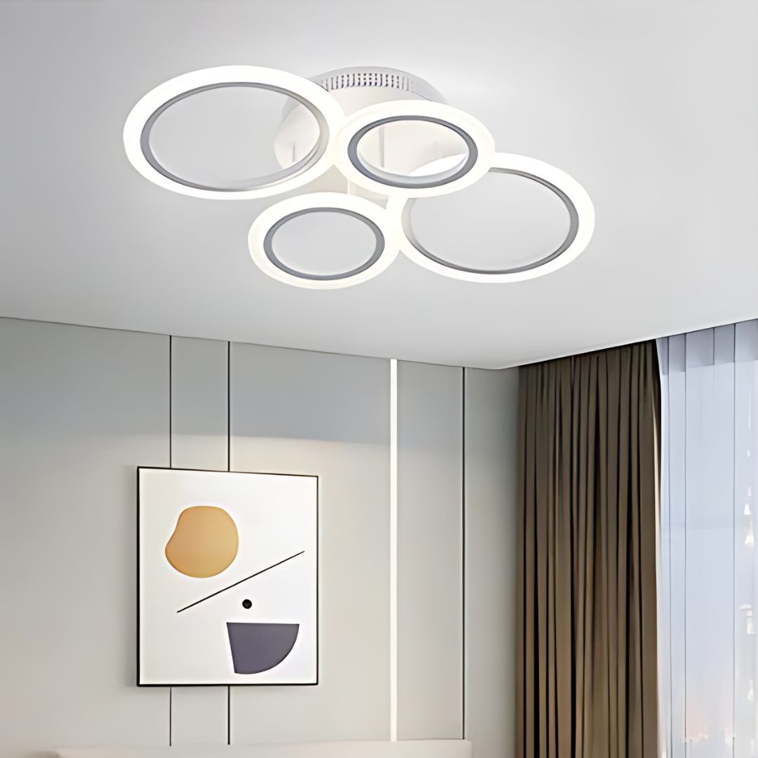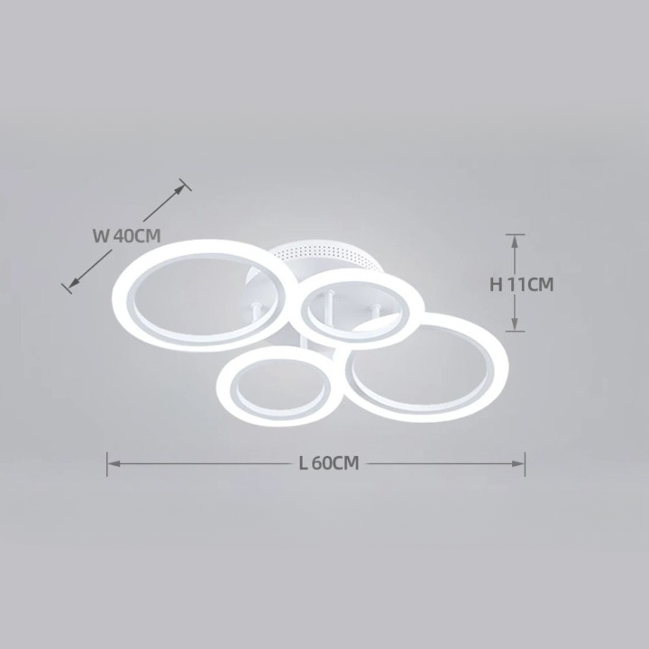 Ce plafonnier LED à quatre anneaux suspendus apporte une touche de modernité à votre décoration. Il vous permet de choisir entre différentes couleurs de lumière : blanche, chaude ou naturelle pour créer l’ambiance idéale. Facile à installer, il transforme instantanément votre pièce en y ajoutant une allure contemporaine.