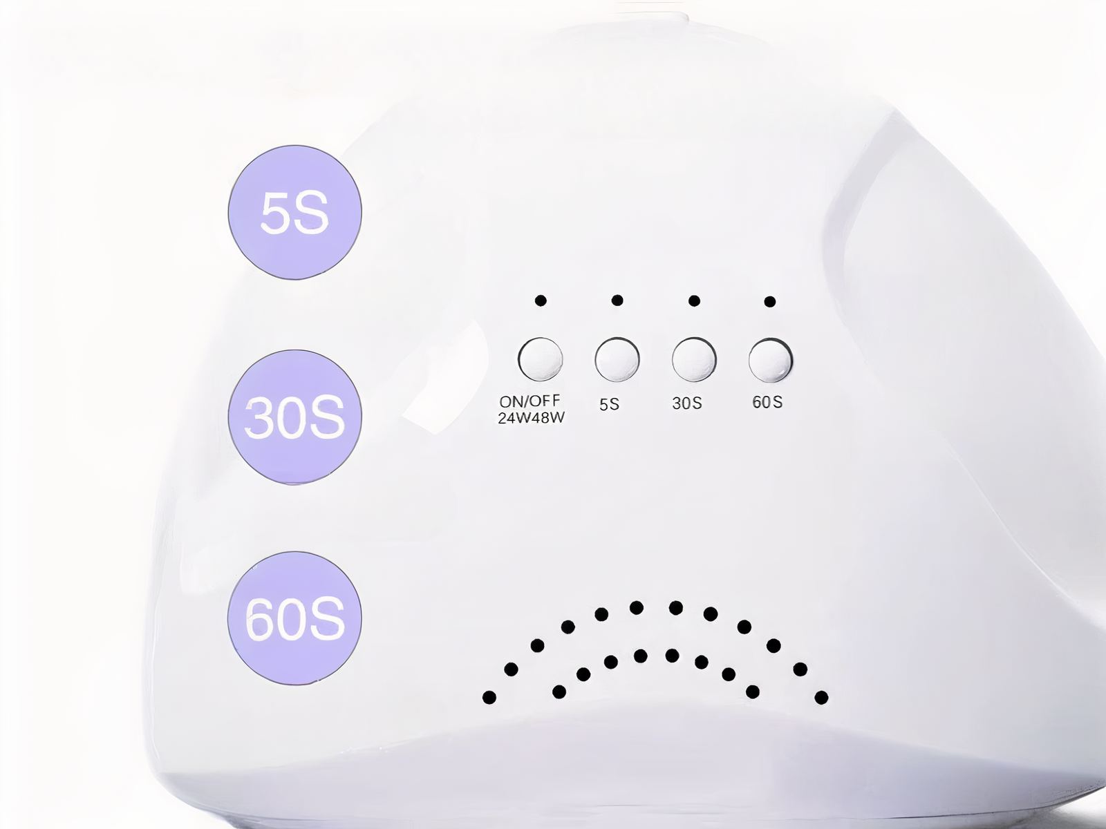 Doté d’un minuteur rapide intégré avec des réglages de 5, 30 et 60 secondes, notre lampe LED ongle offre une précision parfaite pour le séchage de vernis classique ou UV. La protection des yeux intégrée évite l’éblouissement, garantissant une utilisation sécurisée et confortable. Cette combinaison de caractéristiques assure une manucure précise et sans stress, adaptée aussi bien aux amateurs qu'aux professionnels.